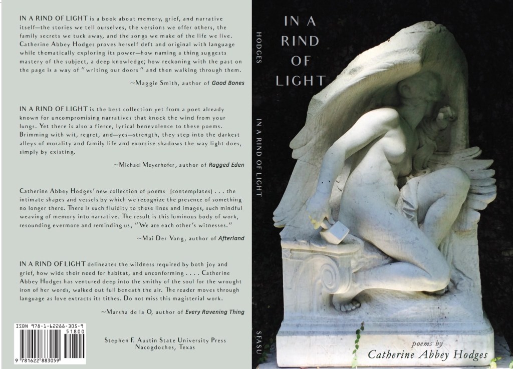 “In a Rind of Light is a book about memory, grief, and narrative itself—the stories we tell ourselves, the versions we offer others, the family secrets we tuck away, and the songs we make of the life we live. Catherine Abbey Hodges proves herself deft and original with language while thematically exploring its power—how naming a thing suggests mastery of the subject, a deep knowledge; how reckoning with the past on the page is a way of ‘writing our doors’ and then walking through them.”