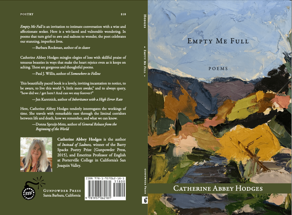 “Empty Me Full is an invitation to intimate conversation with a wise and affectionate seeker. But Catherine Abbey Hodges is no common questioner. Hers is a wit-laced and vulnerable wondering. Exhilarated by relationship with human, animal, earth and sky, in language honed with care and cadence, her surprising turns of thought and discovery deepen our shared humanity. Without being sentimental, the book is rich with sentiment. Without dictating belief, the collection inspires reverence for the greater-than-human. In poems that turn grief to awe and sadness to wonder, the poet celebrates our stunning, imperfect lives.”